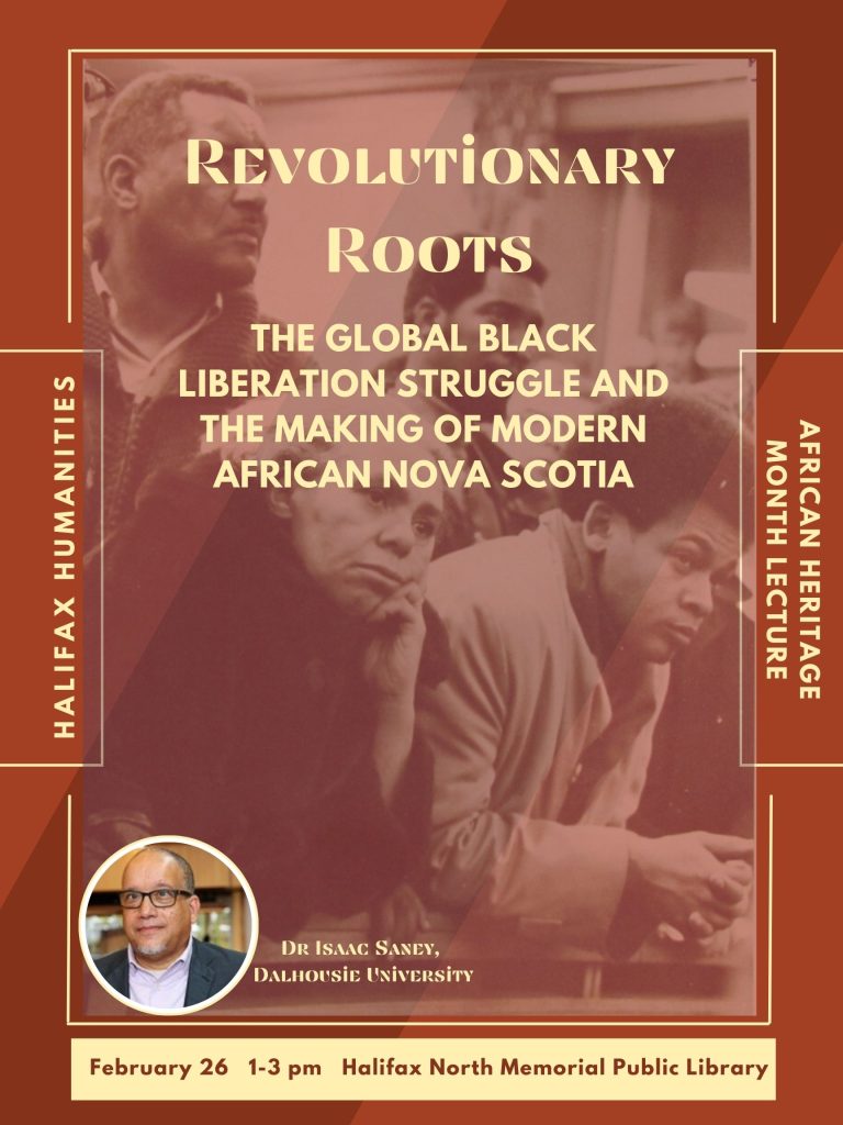 On February 26, 2026, Dr. Isaac Saney will present Halifax Humanities’ African Heritage Month lecture at the North Memorial Public Library. From 1:00-3:00pm in the Terry Symonds auditorium, come hear Dr. Saney speak on the “Revolutionary Roots” of African Nova Scotia’s connections to global Pan-African and Black Power movements from the 1930s through the 1980s.