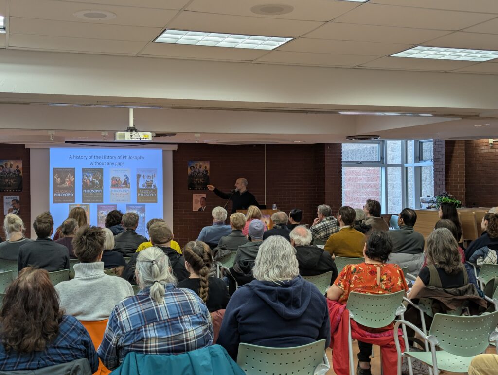 On Wednesday, April 16 at 6:30 PM at the North Memorial Library Dr. Adamson presented “Philosophy from Everywhere, for Everyone: Podcasting Global Philosophy” for our the Humanities Today Lecture Series. Since 2010, Peter Adamson has been producing the History of Philosophy Without Any Gaps, a podcast that has been downloaded more than 45 million times across nearly 700 episodes, covering not just European but also Africana, Chinese, Indian, and Islamic philosophy. In his lecture he discussed the challenges and benefits of this sort of public outreach project in philosophy, and also talked about how the project has evolved over time, often in response to listener feedback.